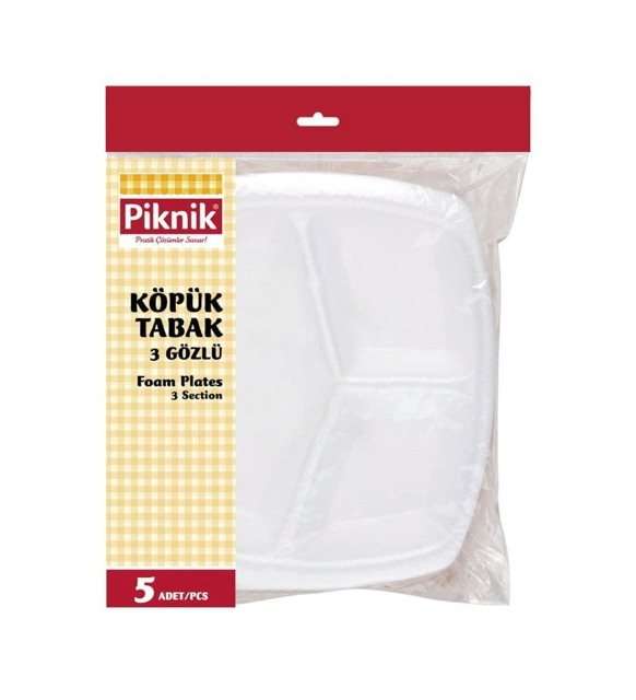 Yıldönümü Piknik Köpük Tabak 3 Göz 5'Li